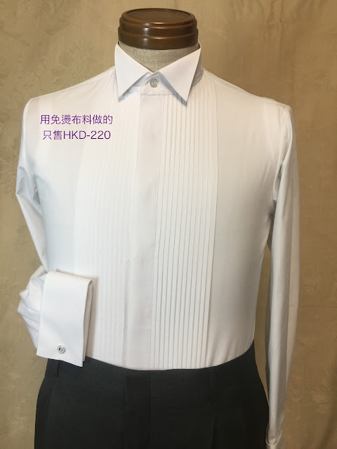 去年我做咗白老鼠試著過幾隻布料,最後決定用免燙布料做禮服恤衫同普通恤衫,免燙產品已推出,注意:首批免燙未齊款同齊碼